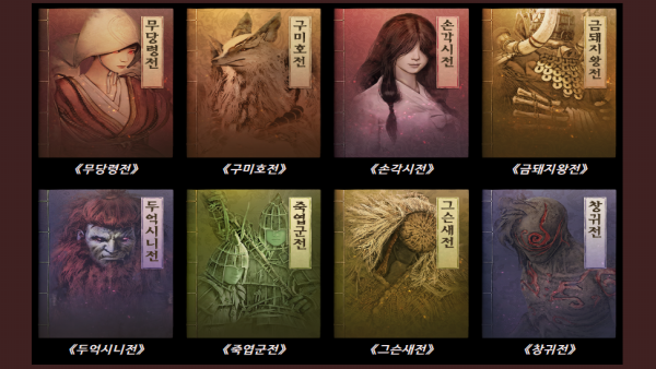 무당령전, 구미호전, 손각시전, 두억시니전 등 다양한 이야기가 모험가를 기다리고 있다. 각 이야기들은 스토리를 좋아하는 유저들을 위해 소설책 한 권 분량의 텍스트와 컷신이 준비됐다. 또한 박지윤, 현경수, 곽규미, 조경이 성우 등 호화 성우진들의 더빙으로 모험가들의 귀를 즐겁게 해줄 예정이다.