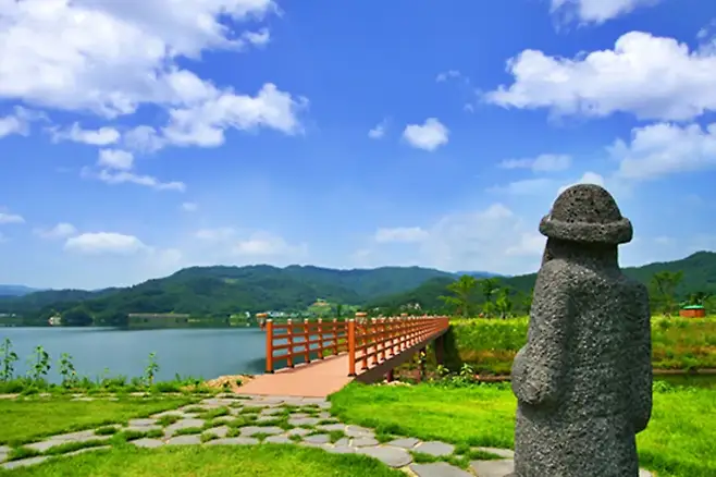 호수 서안 언덕 위 동수리 전망대는 한반도섬 전체 윤곽을 가장 선명히 조망할 수 있는 포인트다. 봄철에는 활짝 핀 버드나무와 철쭉이 호수 색과 대비돼 인생 사진을 남기기에 제격이다. 전망대 뒤편 ‘평화빌리지’ 조성 공사가 진행 중이며, 전통 한옥 숙박동과 로컬 공방이 2027년 순차 오픈한다.
