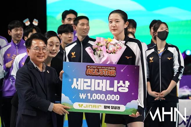 두 사람은 어김없이 이번 시즌에도 세리머니 킹과 퀸에 이름을 올렸다. 15표를 받은 신영석은 올 시즌까지 통산 4회, 23표를 받은 이다현은 통산 3회 수상으로 해당 부문 최다 기록을 달성했다. 세리머니상 상금은 각 100만원과 인형, 왕복 항공권이다.