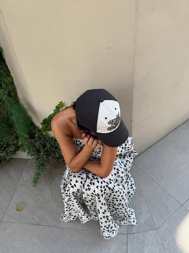 무심하게 눌러쓴 야구 모자, 그 아래로 드러난 대담한 어깨선.