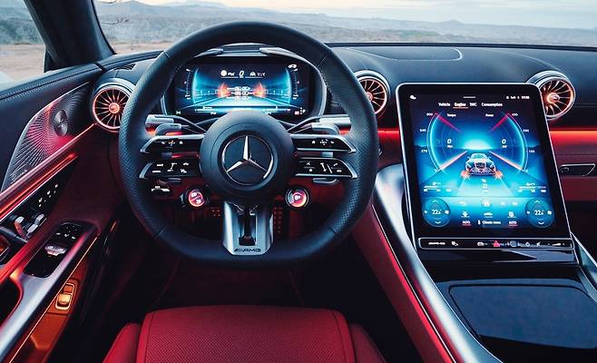 외관을 살펴보면, 전반적으로 스포티한 감각이 돋보이는데, 클래식한 AMG 스포츠카의 비율이 현대적으로 재해석됐으며, 긴 보닛과 강조된 파워돔, 탄탄하게 균형잡힌 실루엣이 시선을 사로잡는 분위기다.