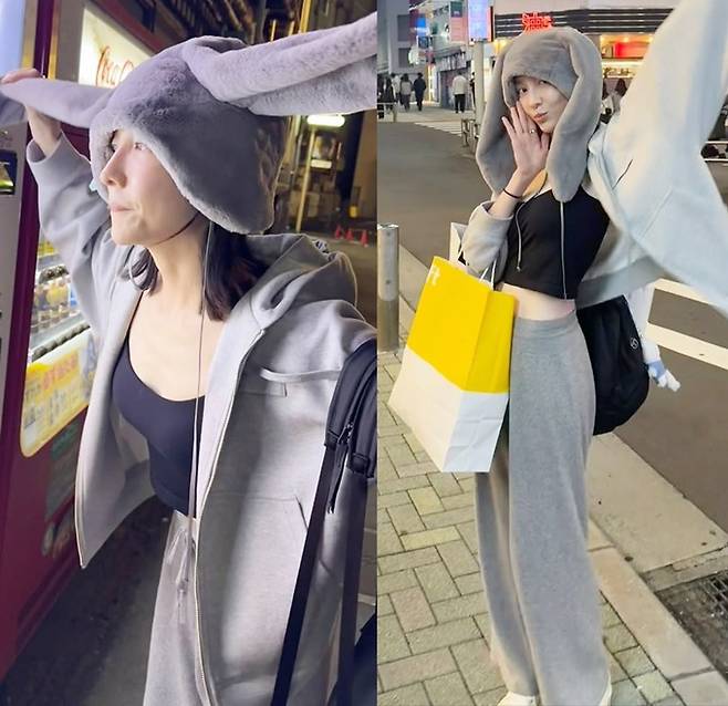 배우 박지현이 일본 도쿄 거리에서 귀여운 토끼모자와 트레이닝룩으로 반전 매력을 발산했다.