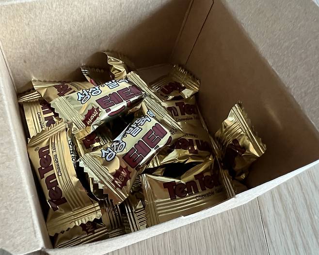 텐텐츄정은 캬라멜 같이 생겼지만 씹어 먹는 비타민 입니다