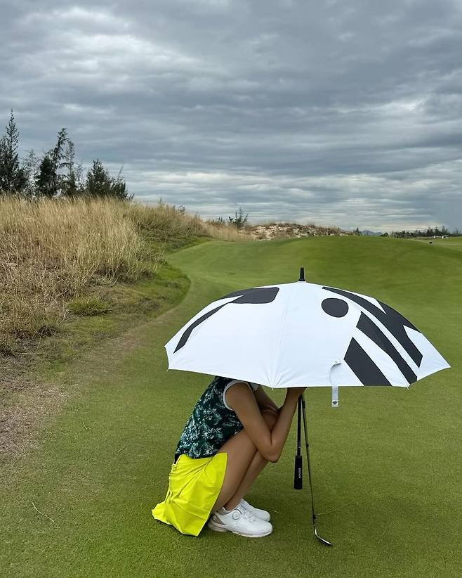 프로골퍼 문정현이 6월 초, 인스타그램을 통해 올린 한 장의 사진이 화제를 모으고 있다. 흐린 하늘 아래 펼쳐진 필드 한가운데서, 그녀는 커다란 화이트 앰블럼 우산 아래 쪼그려 앉아 특유의 장난스러운 표정을 숨긴 채 포즈를 취했다. ‘까꿍’이라는 멘트와 함께 공개된 이번 게시물은 골프웨어 브랜드 ‘볼빅 어패럴’의 상큼한 스타일링이 돋보이는 순간이다.
