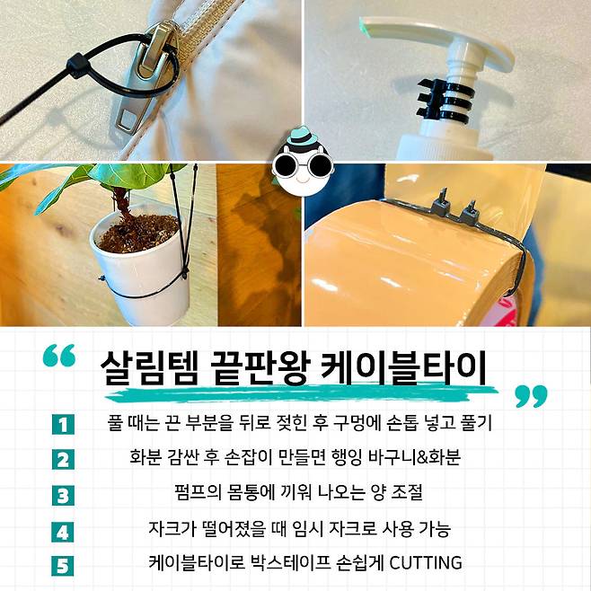 오늘은 집에 하나씩은 꼭 있는 케이블타이 재사용법과 활용법 알아봤어요. 다음 번엔 더 유용한 살림으로 찾아올게요~