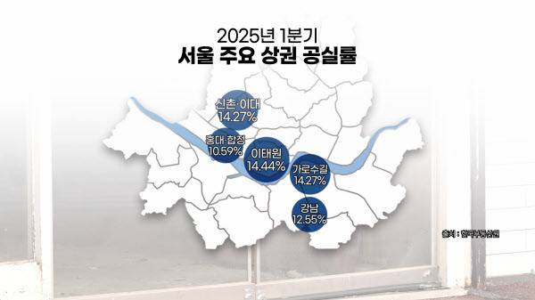 이러한 상권 붕괴 조짐은 수치로도 확인할 수 있는데요. 한국부동산원 중대형 상가 공실률에 따르면, 올해 1분기 이태원의 공실률은 14.44%로 서울 주요 지역 상권보다 높습니다.