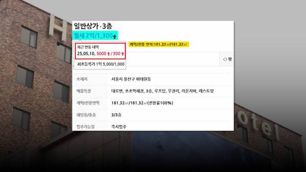현재 올라온 매물을 살펴보면, 해밀톤호텔 뒤로 1층 상가 기준 전용 148㎡가 보증금 2억에 월세 1200만원, 전용 161㎡ 매물은 최근 가격을 높여 보증금 2억에 월세 1300만원인데요. 무권리인 조건은 많았지만 월세는 아직 높습니다. 서울 용산구 이태원동 B공인중개사 사무소 관계자는 "월세가 밀려 권리금을 받지 못하고 나간 상인들이 많다"며 "유명한 술집이나 클럽을 제외하고는 상인들이 겨우 버티는 상태다"고 말했습니다.