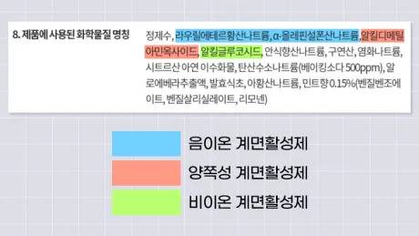 계면활성제 종류별 특징을 보면 알 수 있듯이 피부에 자극이 덜하기 위해서는 음이온 계면활성제가 없고, 비이온이나 양쪽성 계면활성제만 포한된 제품을 고르는 것이 도움이 됩니다.