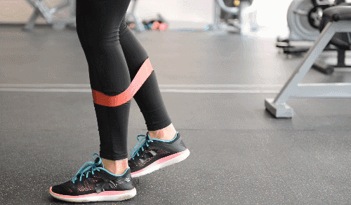 매트에 서서 두 다리 사이에 밴드를 착용하고, 손은 허리 옆에 둡니다. 시선은 정면을 향한 채 오른발을 뒤로 뻗으며 킥백 동작을 반복합니다. 이어서 왼발도 같은 방식으로 뒤로 뻗으며 운동을 계속하세요.