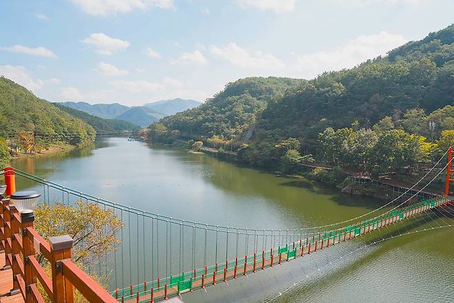 입곡군립공원은 일제강점기에 농업용수를 마련하기 위해 만든 구불구불한 입곡저수지 일대에 조성한 역사가 있는 공원입니다. 저수지 왼편에는 절벽을 따라 소나무숲이 우거지고 그 사이엔 하이킹을 할 수 있는 등산로가 나 있어서, 조용한 등산로로 즐길 수도 있습니다