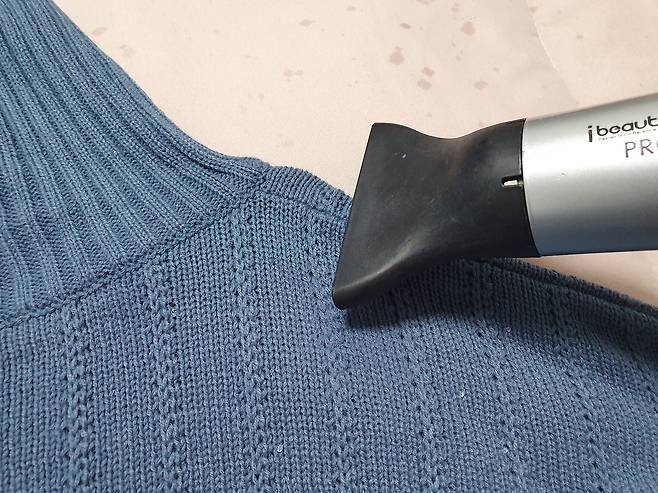 이렇게 반복해 주니 옷걸이 자국이 사라진 것 보이시나요? 볼록해져서 당장 입기는 힘들겠다 싶었던 옷이었는데 자국이 깔끔하게 사라졌네요.