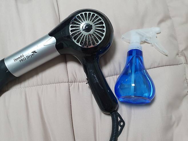 준비물은 집에서 사용하시는 드라이기와 분무기가 있으면 쉽게 해결이 가능해요.
