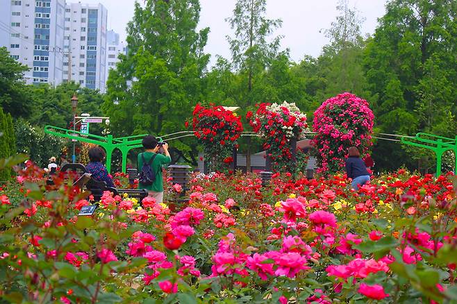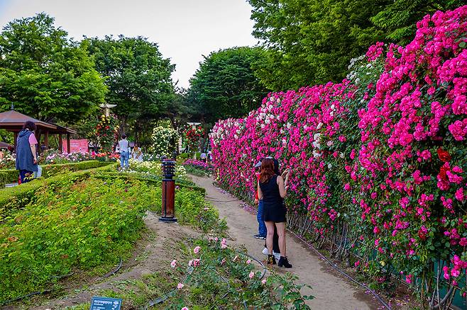 장미원의 다양한 품종이 선사하는 색감의 향연 외에도, 이 시기에는 포토존과 조형물이 더욱 화려하게 꾸며져 방문객들이 남기는 한 장의 사진마저 특별해진다.