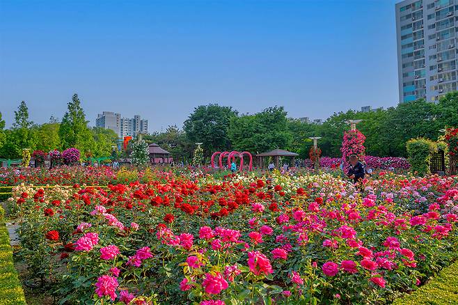 이곡장미공원은 단순한 꽃 구경 장소가 아니다. 전체 면적 약 15,000㎡ 중 5,000㎡에 조성된 장미원은 규모만큼이나 다양하고 풍성한 볼거리를 자랑한다.