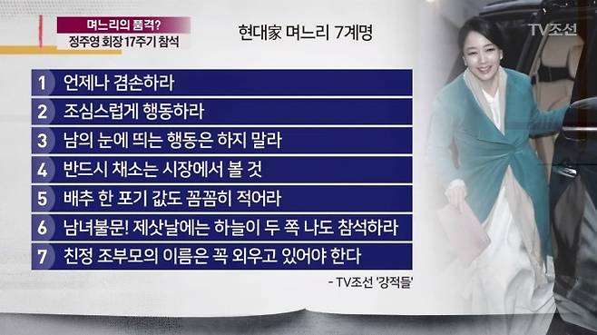 같은 맥락에서 매체들은 이 집안에 내려오는 ‘며느리 7계명’이 소개됐다고 보도했죠.