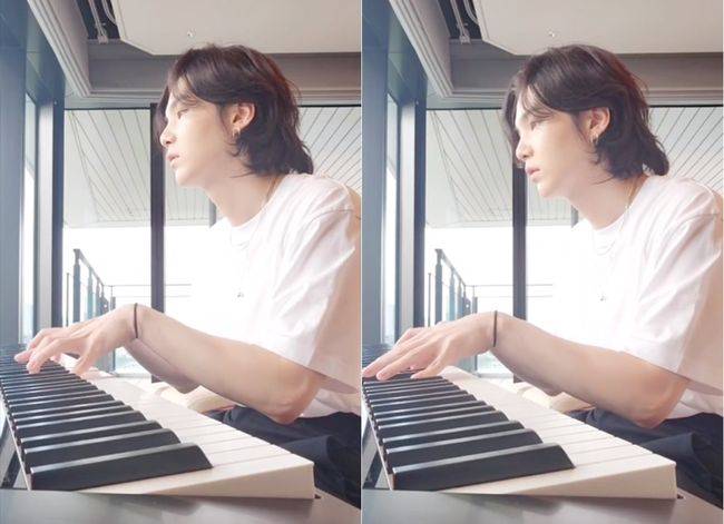 공개된 영상은 건반을 연주하는 슈가의 모습.