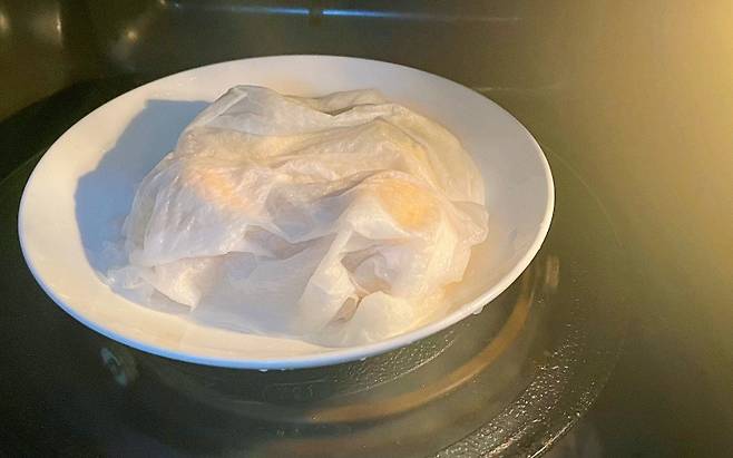 이럴 때 키친타월을 활용하시면 전자레인지로도 냉동만두 찜기에 찐 듯 촉촉하게 해동할 수 있는데요