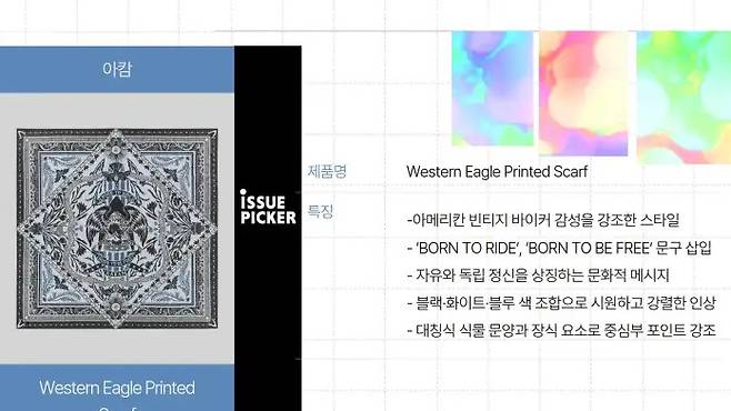 해당 제품은 아메리칸 빈티지 바이커 감성을 전면에 내세운 디자인이 특징이다. 중앙에는 날개를 활짝 펼친 독수리가 방패를 감싸고 서 있는 모습이 배치돼 있고 상단에는 ‘BORN TO RIDE’, 하단에는 ‘BORN TO BE FREE’라는 문구가 새겨져 있다.