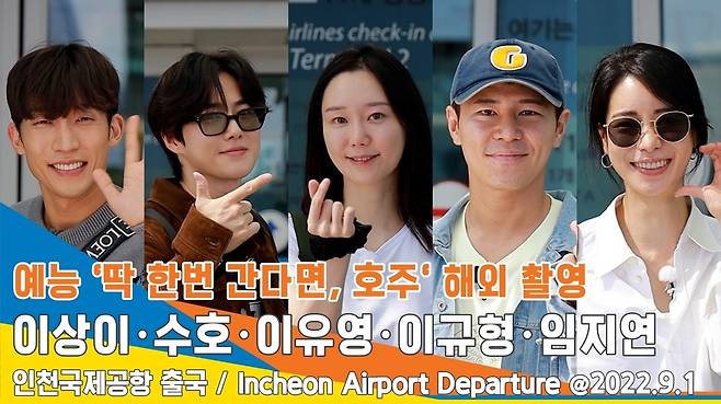 배우 이규형, 이상이, 임지연, 이유영, 엑소(EXO) 멤버 수호(SUHO)가 9월 1일 오후 인천 중구 운서동 인천국제공항 제 1여객터미널을 통해 SBS 신규 예능 프로그램 '딱 한번 간다면, 호주(가제)' 촬영 차 호주 퀸즐랜드로 출국하고 있다.