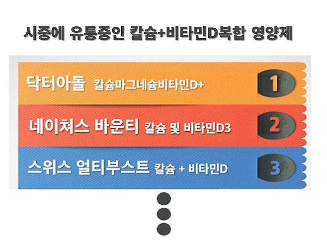현실적으로 칼슘과 비타민D를 매번 식사 때마다 챙겨먹는 것은 쉽지 않습니다. 그렇기에 비타민D와 칼슘이 함께 들어있는 영양제를 섭취하는 것이 생활에 적용하기 쉬우면서 효율적이라고 할 수 있습니다.