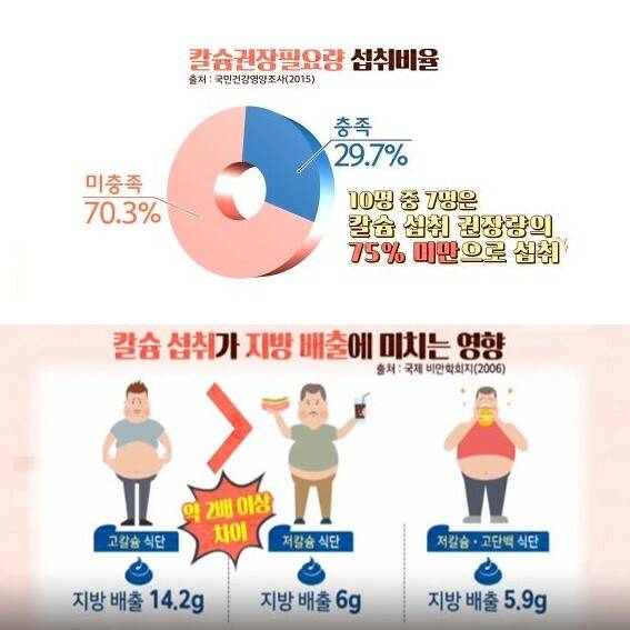칼슘 섭취가 지방 배출에 큰 도움을 준다는 사실 알고 계셨나요? 고칼슘 식단을 챙겨 먹은 집단은 그렇지 않은 집단에 비해 무려 2배 이상 지방 배출을 더 많이 한다고 합니다.