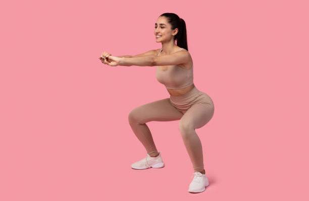 : 기본 스쿼트는 하체의 힘과 코어 근육의 안전성을 높이고 등 근육을 단련시켜준다.