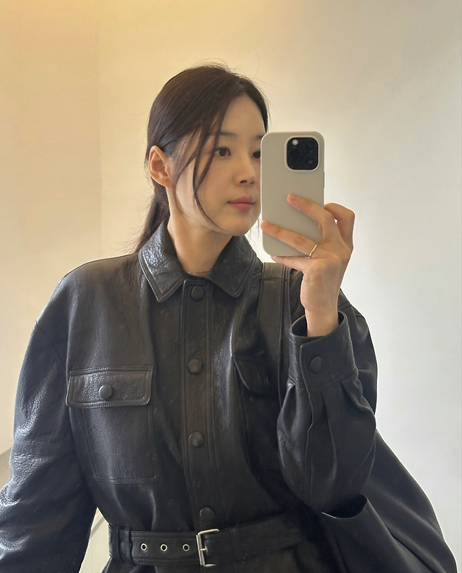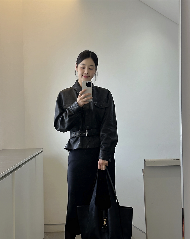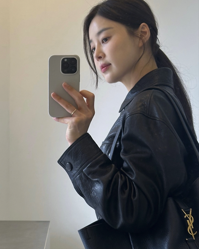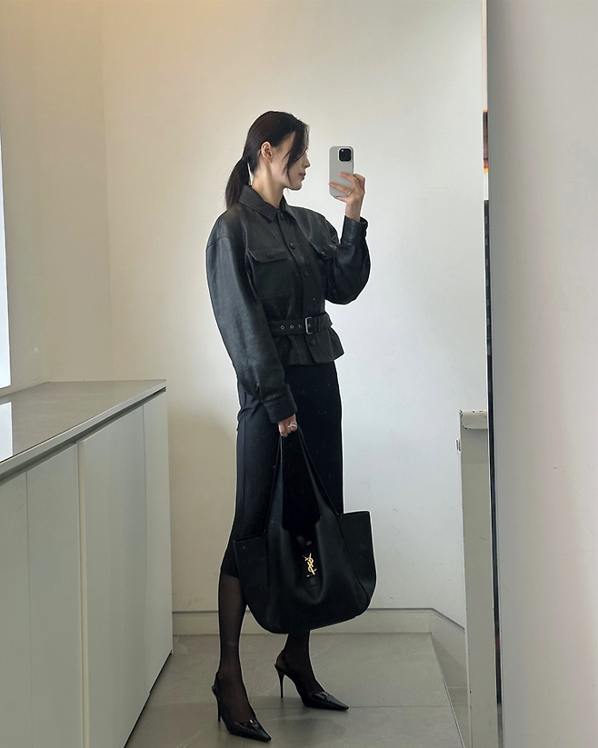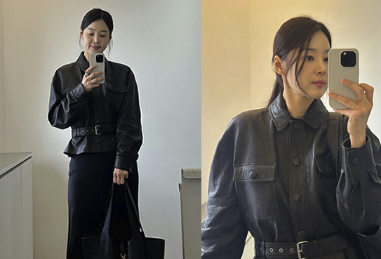 가죽자켓을 입었는데도 단아한 느낌이 들더라고요.