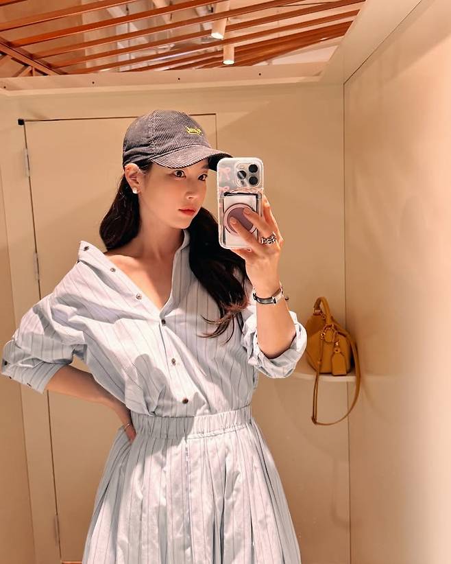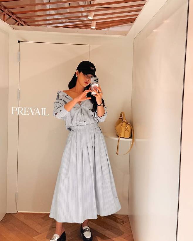 타임리스 스타일을 추구하는 패션 브랜드 프리베일(PREVAIL) 피팅룸 착샷을 통해 볼 수 있는 기은세의 봄 일상 코디는