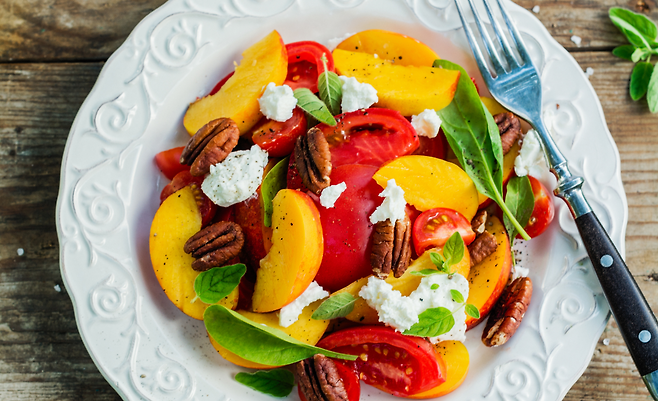 신선한 복숭아는 비타민 C, 섬유질, 항산화 물질이 풍부하여 면역력 강화와 소화기 건강에 도움이 됩니다. 복숭아를 깨끗이 세척한 후 껍질째 먹는 것이 좋습니다. 껍질에는 많은 영양소와 식이섬유가 포함되어 있어 소화를 돕고 포만감을 유지하는 데 유리합니다.