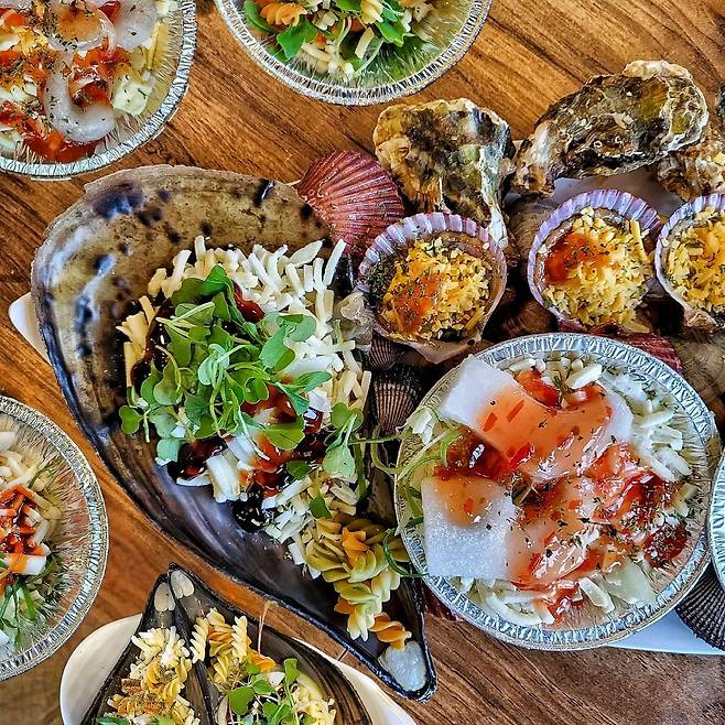 관광지에 있지만 바가지 씌운다는 소리를 듣지 않도록 소신있게 운영한다는 오이도 '청춘조개'. 무한리필부터 다양한 구성의 세트메뉴, 단품메뉴까지 푸짐한 조개구이를 먹을 수 있다. 가장 인기메뉴는 명품조개구이한상으로 여러종류의 조개, 키조개파스타, 전복버터구이, 파불고기, 치즈버섯떡볶이, 알새우그라탕, 셀프해물라면까지 보기만해도 푸짐한 한상이 나온다. 싱싱한 조개는 치즈와 각종양념에 찍어먹으면 다양하게 즐길 수 있다. 예약 후 방문하면 멘보샤까지 서비스로 제공된다니 예약후 방문하는 것을 추천한다.