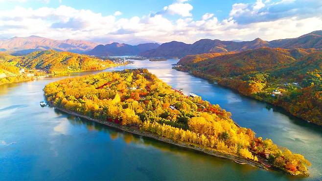원래는 내륙의 평지였던 이곳은 1944년 청평댐의 수위 상승으로 인해 섬이 되었다.