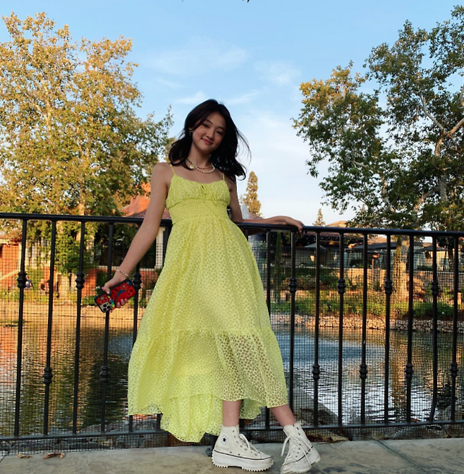 레몬색 원피스를 착용한 엘라 그로스는 폭풍성장한 모습으로 눈길을 끌고 있습니다.