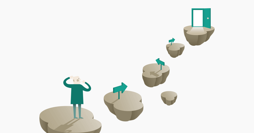 이런 걱정을 덜기 위해서 가이드는 정보를 주거나, 문제를 해결하기 위해 밟아야 할 단계를 알려줘요. 고객이 개울을 건널지 말지 고민할 때 딛고 건널 징검다리를 놓아주는 거죠. 그럼 고객이 느끼는 위험을 줄일 수 있고, 거래하는 것을 더 편하게 생각할 수 있거든요. 바로, 이 징검다리를 '계획'이라고 불러요!