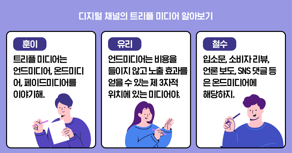 Q. 다음 중 디지털 채널의 트리플 미디어에 대해 옳지 않은 설명을 한 사람은 누구일까요?