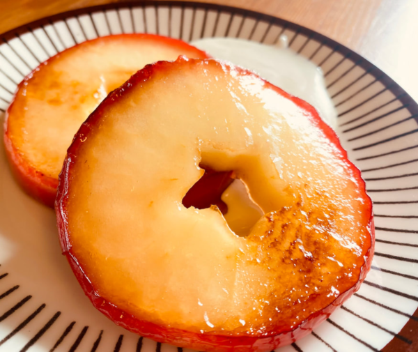 열을 가하면 꿀의 일부 효소가 파괴되긴 하지만, 사과 위에 얇게 뿌려 조리하는 방식은 대부분의 유익 성분을 보존할 수 있다. 꿀 특유의 부드럽고 윤기나는 텍스처는 구운 사과와 어우러져 디저트처럼 느껴지는 만족감을 준다. 자연식 단간식으로도 손색이 없다.