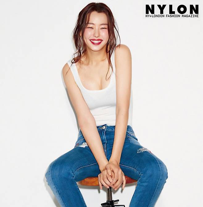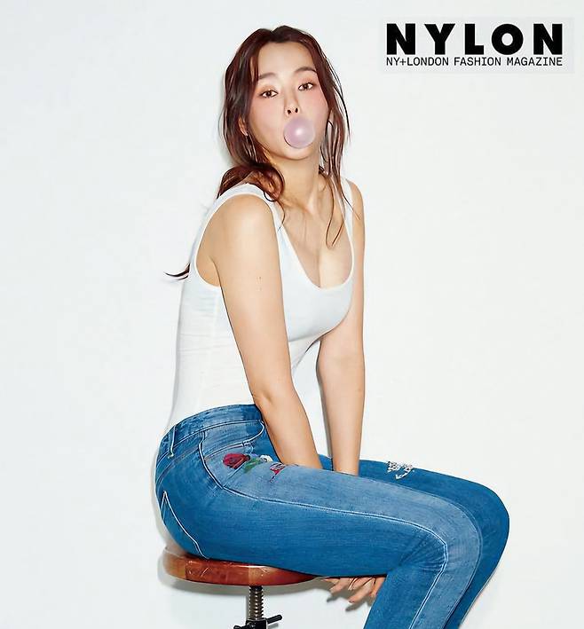 2019년 게스와 함께한 나일론 화보로 무려 6년 전 화보임에도 전혀 촌스럽지 않습니다. 흰색 민소매에 데님진을 매치하고 풍선껌불며 장난꾸러리 같은 표정은 감출 수 없는 러블리 섹시 그자체입니다.