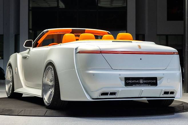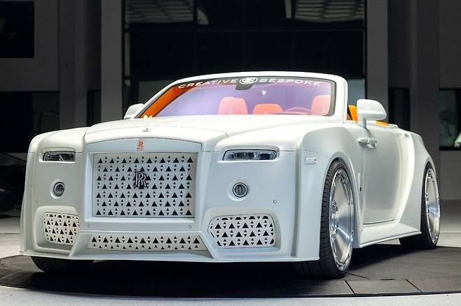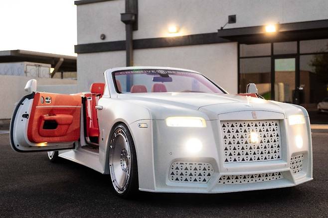 문제의 차량은 롤스로이스 던을 기반으로 한 풀 커스텀 모델이다. 미국 튜닝샵이 제작한 이 차는 와이드바디와 화이트 컬러, 과감한 조명 구성으로 기존 던과는 전혀 다른 인상을 만든다. 특히 후면부에 적용된 가로형 라이트가 논란의 중심에 서면서, “이 조합이 가능한가”라는 반응이 이어지고 있다.