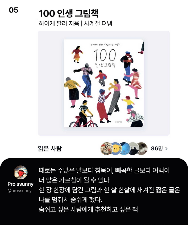 한 장 한장에 담긴 그림과 한 살 한살에 새겨진 짧은 글은 나를 멈춰서 숨쉬게 했다.