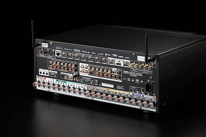 먼저 시네마 40이 무장하고 있는 최신 스펙부터 살펴보자. 시네마 40은 9.4채널 AV 리시버이며 파워 앰프를 추가해 최대 11.4채널까지 확장할 수 있는데, 돌비 애트모스, DTS:X, Auro-3D부터 IMAX 시그니처 사운드를 재현하는 아이맥스 인핸스드(IMAX Enhanced), MPEG-H, MPEG-4 AAC 같은 새로운 세대의 3차원 오디오 포맷을 지원하며, 기존 채널 기반 스피커 레이아웃에서 보다 몰입감 있는 사운드로 만들어 주는 최신 가상 3D 서라운드 기술인 돌비 애트모스 하이트 버추얼라이저, DTS 버추얼:X도 지원한다. 또한 입력 7개, 출력 3개 구성의 HDMI는 8K/60Hz 또는 4K/120Hz 패스스루를 지원하며 HDR, HLG, 돌비 비전, HDR10+, 다이내믹 HDR을 지원하며, HDCP 2.3, ARC·eARC, CEC, 존(ZONE)2도 지원하고, 빠른 프레임을 전송하는 QFT(Quick Frame Transport), 가변 주사율 VRR(Variable Refresh Rate), 짧은 지연 모드 ALLM(Auto Low Latency Mode)도 지원한다.