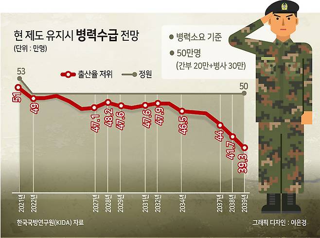 ์ธ๊ตฌ ๊ฐ์์ ๋ณ์ญ ์์ ๋ถ์กฑ: ์ ์ถ์ฐ ํ์์ ๋ณ๋ ฅ ์์ ๊ฐ์๋ก ์ด์ด์ ธ, ํ๊ตญ ๊ตฐ์ ์ ๋ ฅ ์ ์ง์ ์ด๋ ค์์ ์ด๋ํ ์ ์์ต๋๋ค.