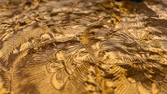 발견된 금박은 약 1300년 전 제작된 것으로 추정된다. 가장 주목할 점은 맨눈으로 식별조차 힘든 초미세 문양의 정교함이다. 현미경으로만 확인 가능한 선 굵기는 불과 수십 마이크로미터 수준으로, 현대 레이저 장비로도 동일한 결과를 구현하기 쉽지 않다. 당시 장인들은 별도의 기계 장비 없이 수작업으로 금박에 이 수준의 정밀도를 구현했을 것으로 보인다. 연구진은 금속 표면에 가해진 압력과 진동의 흔적을 분석하며, 고도의 망치질 기법과 미세 조각 도구의 사용 가능성을 추정했다. 유럽이나 중국에서 금속 장식이 발전한 시기가 고려와 명나라 이후인 점을 고려하면, 신라는 이미 그보다 수백 년 앞선 고도의 세공 문화를 이룩한 셈이다.