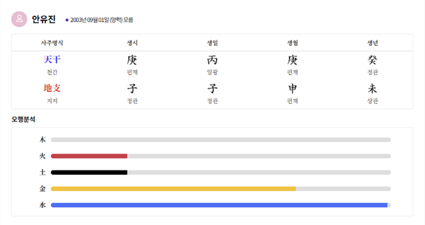 당신의 평생 사주와 안유진의 평생사주를 비교해보세요!