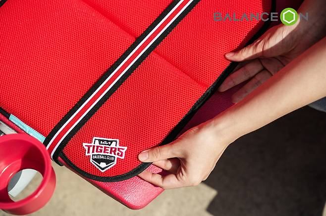 이번 신제품 '밸런스온 휴대용 방석 KIA 에디션'은 전국구 인기 프로야구 구단인 KIA 타이거즈와 협업하여 제작한 방석으로, 딱딱한 야구장 좌석에서도 편안함을 느낄 수 있도록 밸런스온의 독자적인 베타젤 기술이 적용됐다. 또한, 의자 고정용 밴드와 전용 파우치가 포함된 접이식 디자인으로 뛰어난 휴대성과 실용성을 갖춰 야구장을 찾는 팬들에게 최적의 직관 환경을 제공한다.