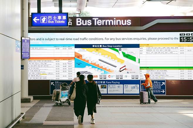 자정을 넘긴 시간에 도착해도 걱정 없다. 우버와 택시는 물론 다양한 노선의 심야버스가 준비돼 있다. 'To City'와 버스 아이콘, 화살표가 큼지막하게 적힌 파란색 안내판을 따라 가면 정류장(Bus Terminus)이 나온다. 센트럴과 완차이, 코즈웨이 베이 등은 N11(01:50/02:50/03:50/04:50, 32.1HKD), 침사추이와 삼수이포, 조던은 N21(00:20~04:40, 23.8HKD)에 탑승하면 된다.