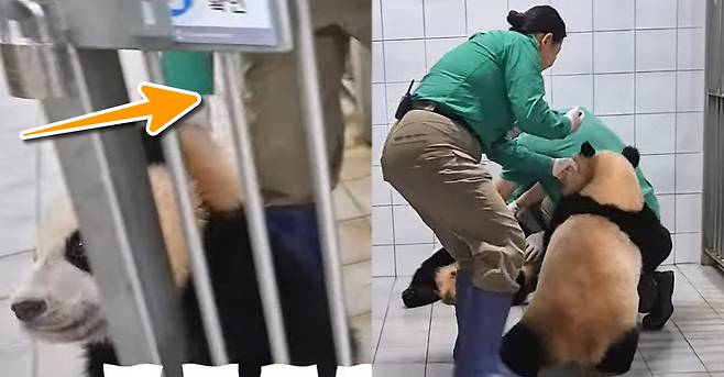 양 수의사는 후이바오에게 물리고 놀라 짧은 비명을 뱉으면서도 "잘 키우고 계시네. 건강하네..." 라고 말했는데요.
