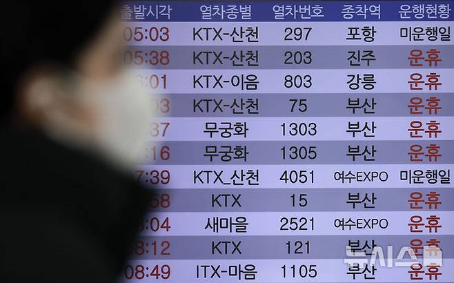 [서울=뉴시스] 정병혁 기자 = 철도파업이 이어지고 있는 10일 서울 용산구 서울역에 철도 운휴 관련 안내문이 표시되어 있다.