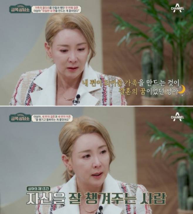 이상아는 세 번의 결혼과 이혼을 겪으며 “도피성, 동정심으로 결혼하면 안 된다”는 뼈아픈 교훈을 얻었다.