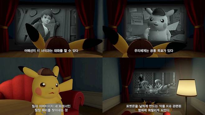전작을 해보지 않았으면 가질 법한 의문인 ‘어쩌다 말하는 피카츄와 엮이게 되었는지’는 게임 시작 시점에 피카츄의 회상으로 들려주고, 전작에서 무슨 일이 있었는지 미주알고주알 이야기하는 일은 없습니다. 전작에서 등장이 있었던 캐릭터는 ‘R 사건 때 인연이 있었다.’정도로 알려주는데, 본작을 플레이함에 있어서 딱 그 정도 정보만 알고 있어도 플레이에는 지장이 없습니다.