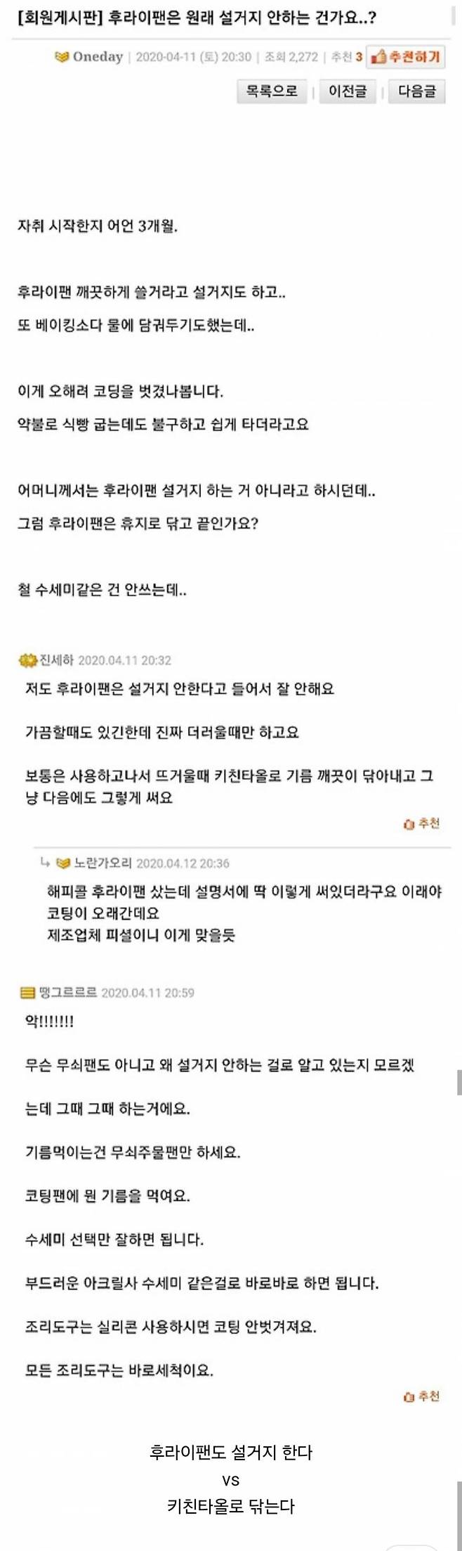 현재 서로 충격받고있는 프라이팬 설거지 논란.JPG