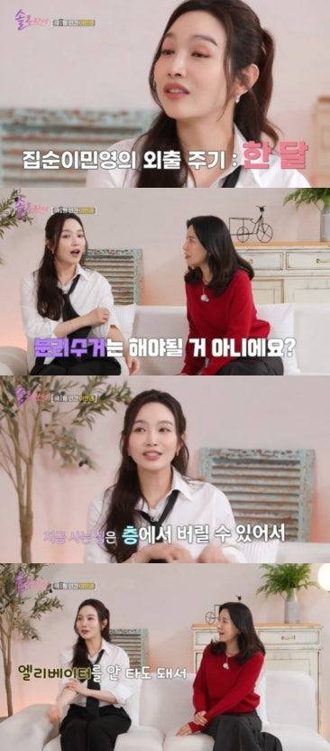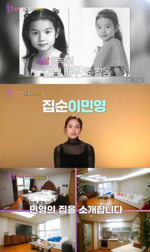 4살 때부터 아역배우로 활동, 1994년 MBC 공채 탤런트로 데뷔해 당대 CF를 섭렵했던 이민영은 예능 솔로라서에서 솔로하우스를 최초 공개했습니다. 솔로인 이유에 대해 이민영은 "내가 새로운 사람을 그렇게 필요로 하지 않는 것 같다"고 말했습니다. 이어 "집순이다 보니 새로운 사람을 만날 기회도 없고, 지금의 (솔로) 생활이 지속되는 게 자연스럽지 않은 것 같다"고 덧붙였습니다.